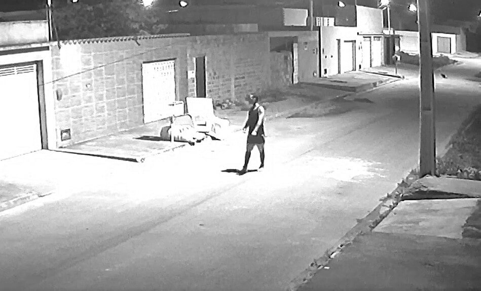 As imagens mostram que o incendiário caminhava normalmente pela rua quando passou em frente à casa onde o material estava descartado. Sem qualquer motivo aparente, ele retornou alguns metros à frente, colocou fogo no material e foi embora como se nada tivesse acontecido, em atitude fria e deliberada.