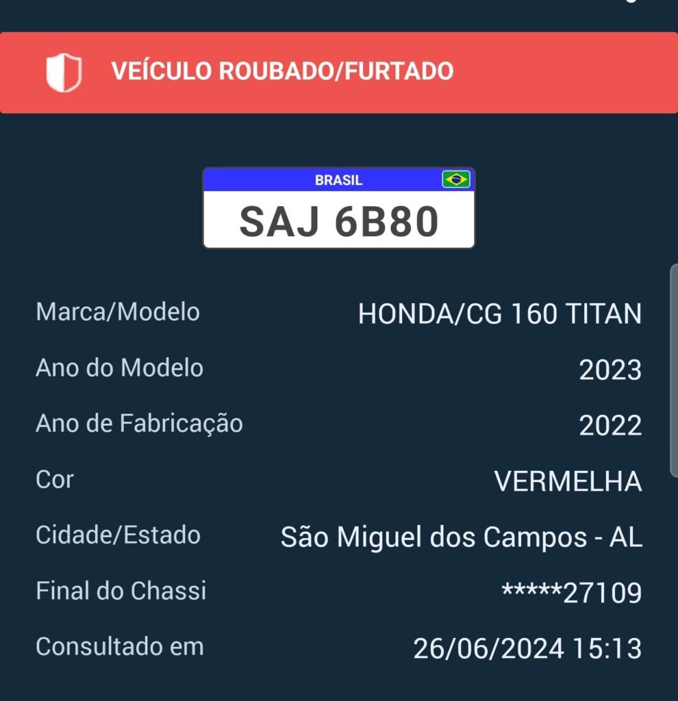 A reportagem do AlagoasWeb consultou a placa do veículo através do Sinesp e a moto ainda consta como roubada.