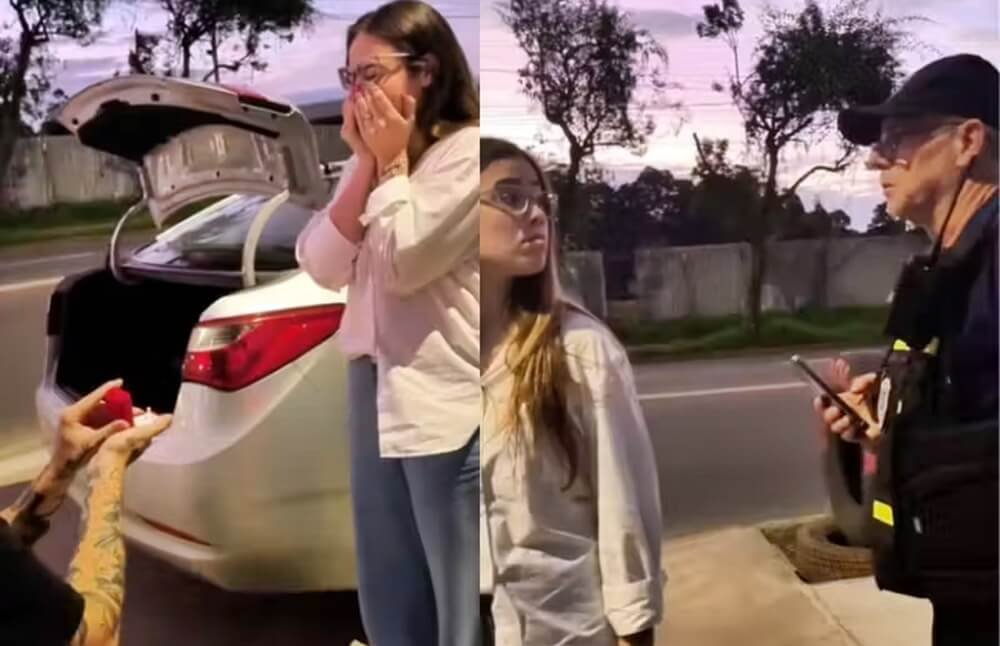 Homem para em blitz combinada para pedir namorada em casamento