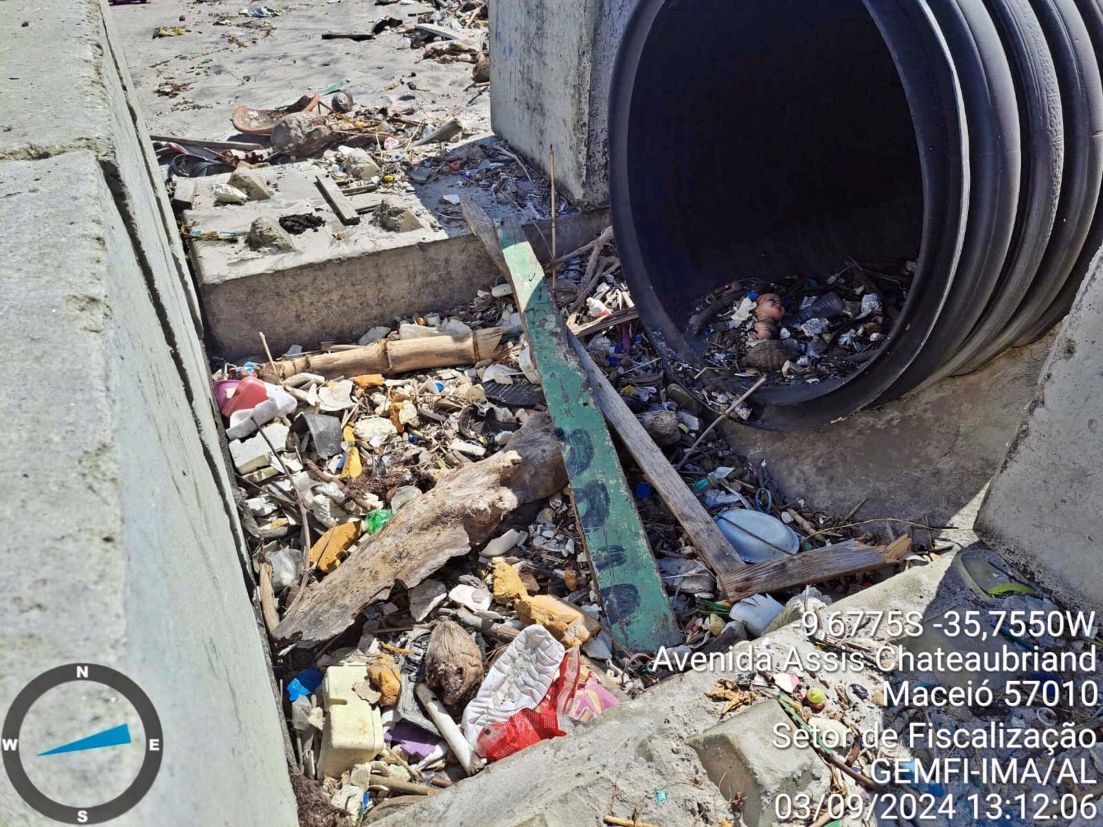 Durante a inspeção, os fiscais verificaram que a galeria de drenagem de águas pluviais, cuja responsabilidade de manutenção e operação é da Prefeitura de Maceió, estava lançando o efluente no mar. “É importante destacar que, nos dias anteriores à inspeção, não houve registro de chuvas na região, o que indica que o despejo não se tratava de um escoamento pluvial”, destacou um dos fiscais.