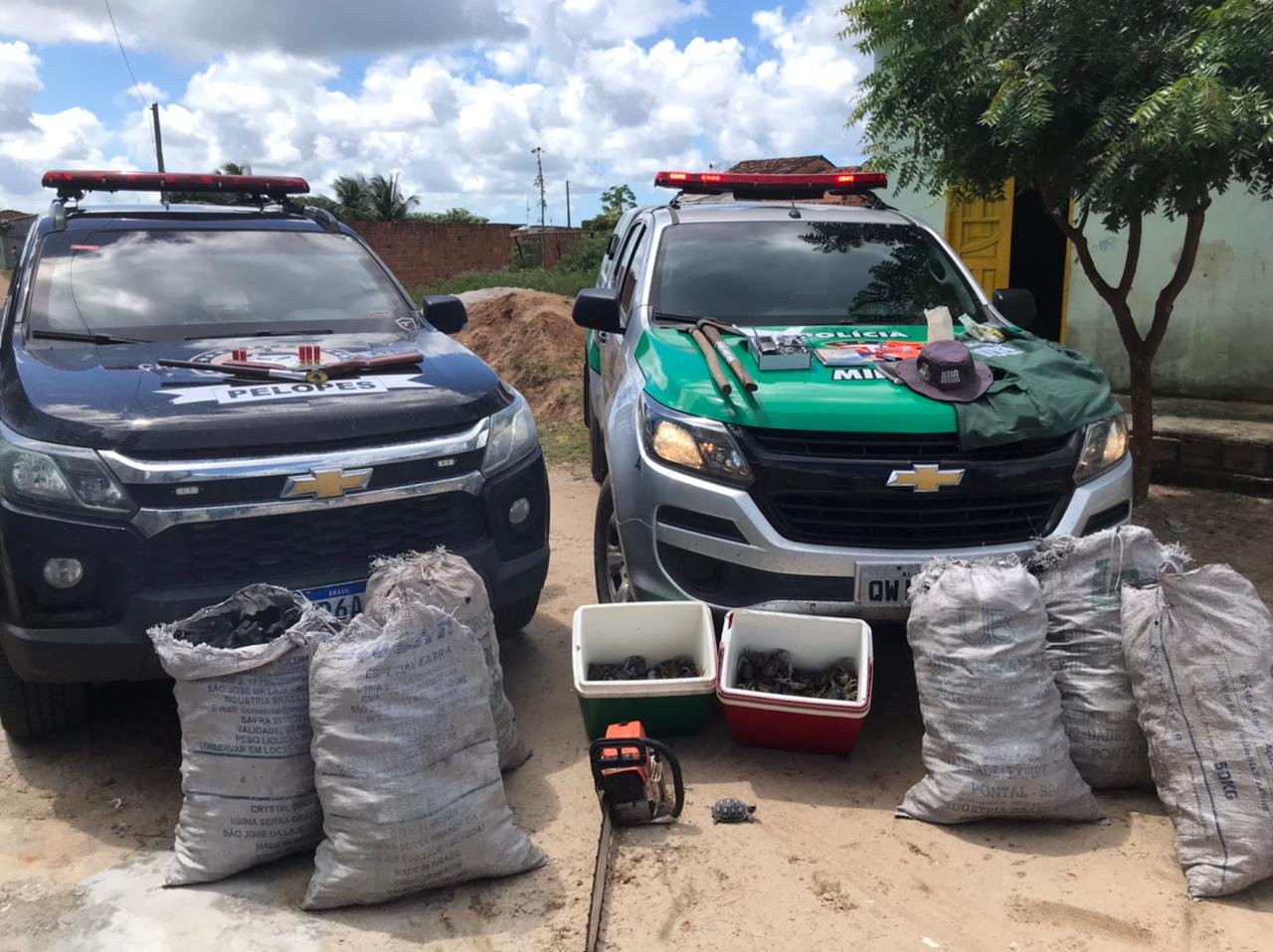 A investigação levou a um indivíduo que estava loteando a área, sem licença ambiental, e vendendo. Ao chegar na residência do envolvido, a equipe da ação também encontrou 82 caranguejos guaiamus, um cágado, uma motosserra e seis sacos de carvão, além de uma espingarda de cano curto serrado e um caderno com registro dos compradores dos lotes. Esses crimes acarretaram R$ 427.355,00 em quatro autos de infração ao responsável.