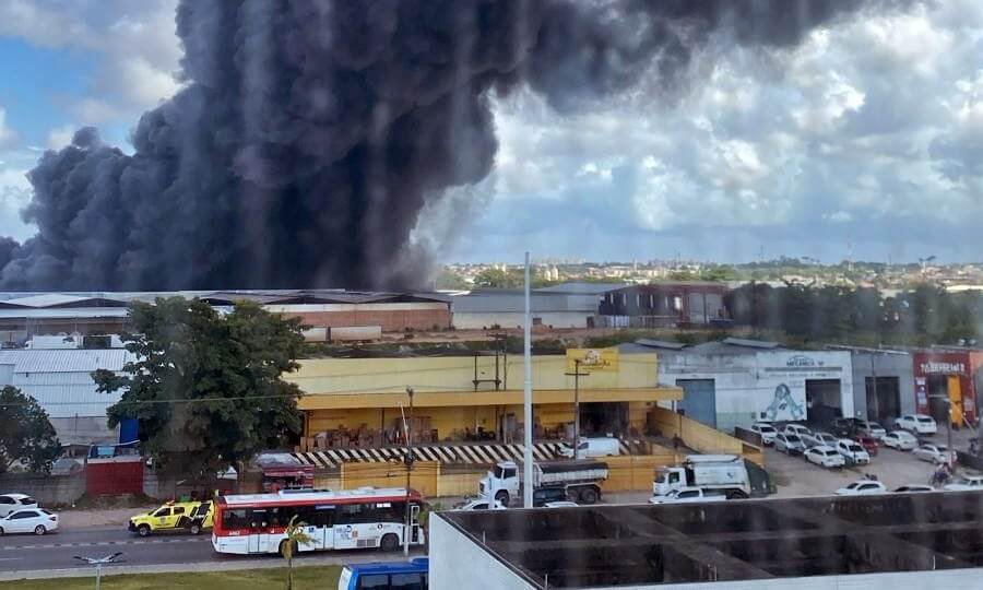 Incêndio de grandes proporções atinge indústria de plástico no Distrito Industrial de Maceió