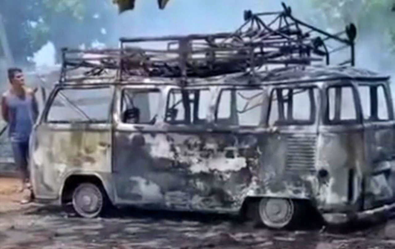 Enquanto a família ainda estava fora do veículo, segundo informações, a Kombi começou a pegar fogo de forma repentina. As chamas se intensificaram e se espalharam rapidamente por todo o carro.