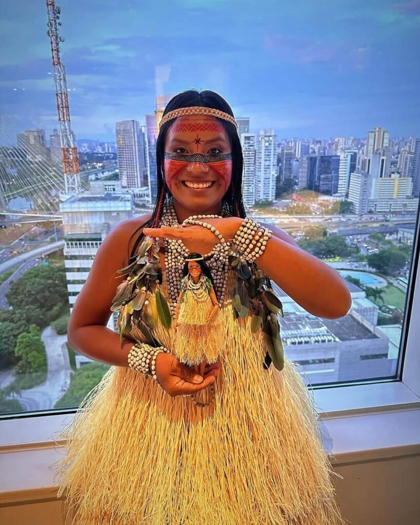 Em sua conta do Instagram, a jovem indígena pergunta aos internautas se ela estaria vivendo um sonho. "Essa semana estivemos em São Paulo para receber essa bela homenagem da Mattel, representando o Brasil em Barbie Role Model, em comemoração aos 65 anos da Barbie e o Dia Internacional da Mulher. Obrigado, Mattel, por essa homenagem. É uma honra representar nosso país. Afinal, você pode ser o que quiser!", agradeceu.