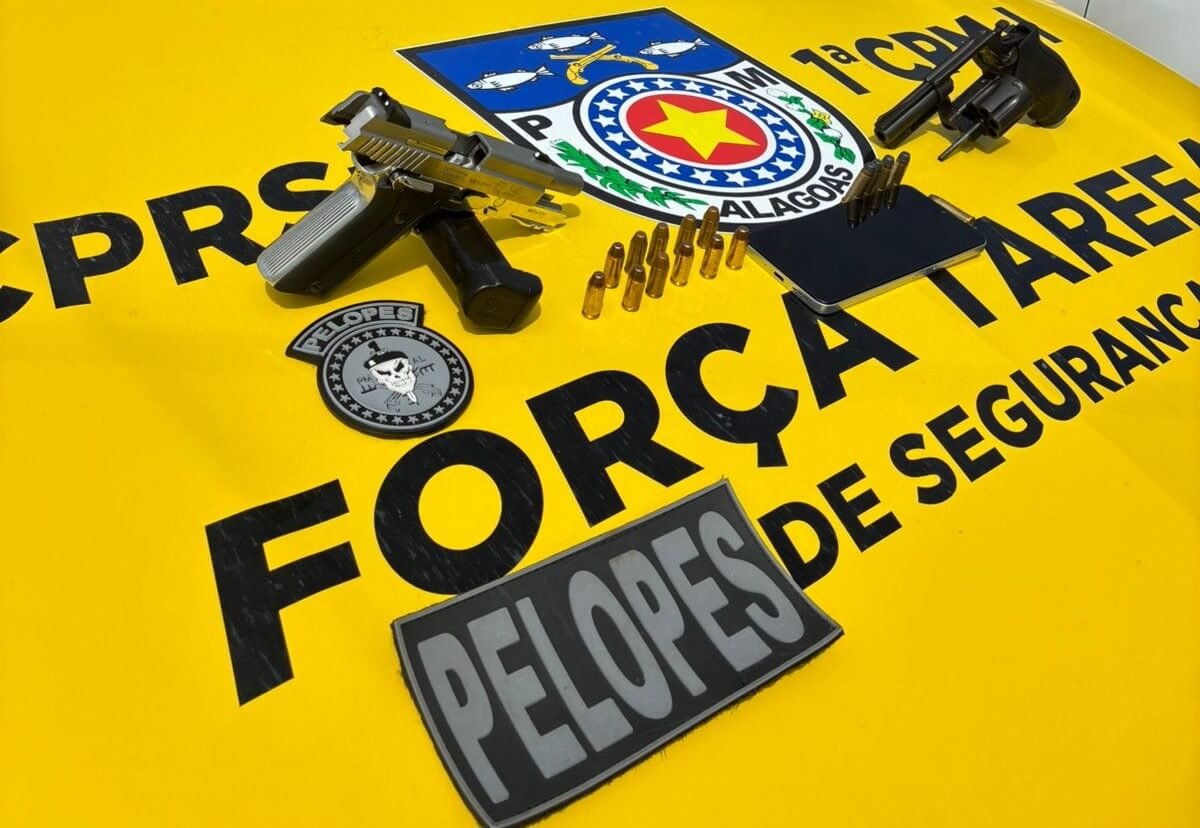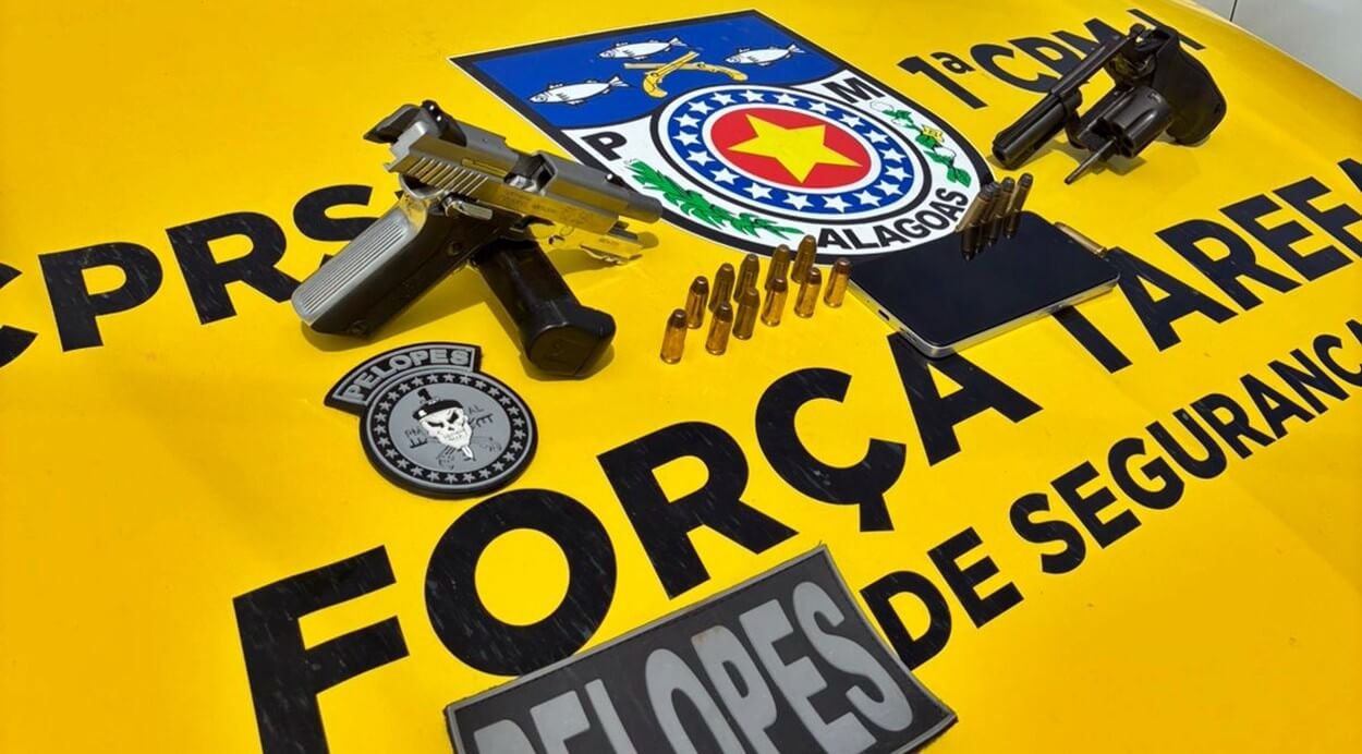 Durante o procedimento os policiais apreenderam, uma pistola da marca Taurus calibre 40, com 11 munições e carregador, um revólver da marca Rossi, calibre 38 com 5 munições intactas, além de um valor em dinheiro.