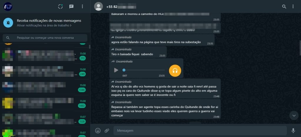 A redação do AlagoasWeb recebeu copias de textos, enviadas por moradores da região, onde os suspeitos ameaçavam matar qualquer pessoa encontrada na rua a noite, veja a integra: