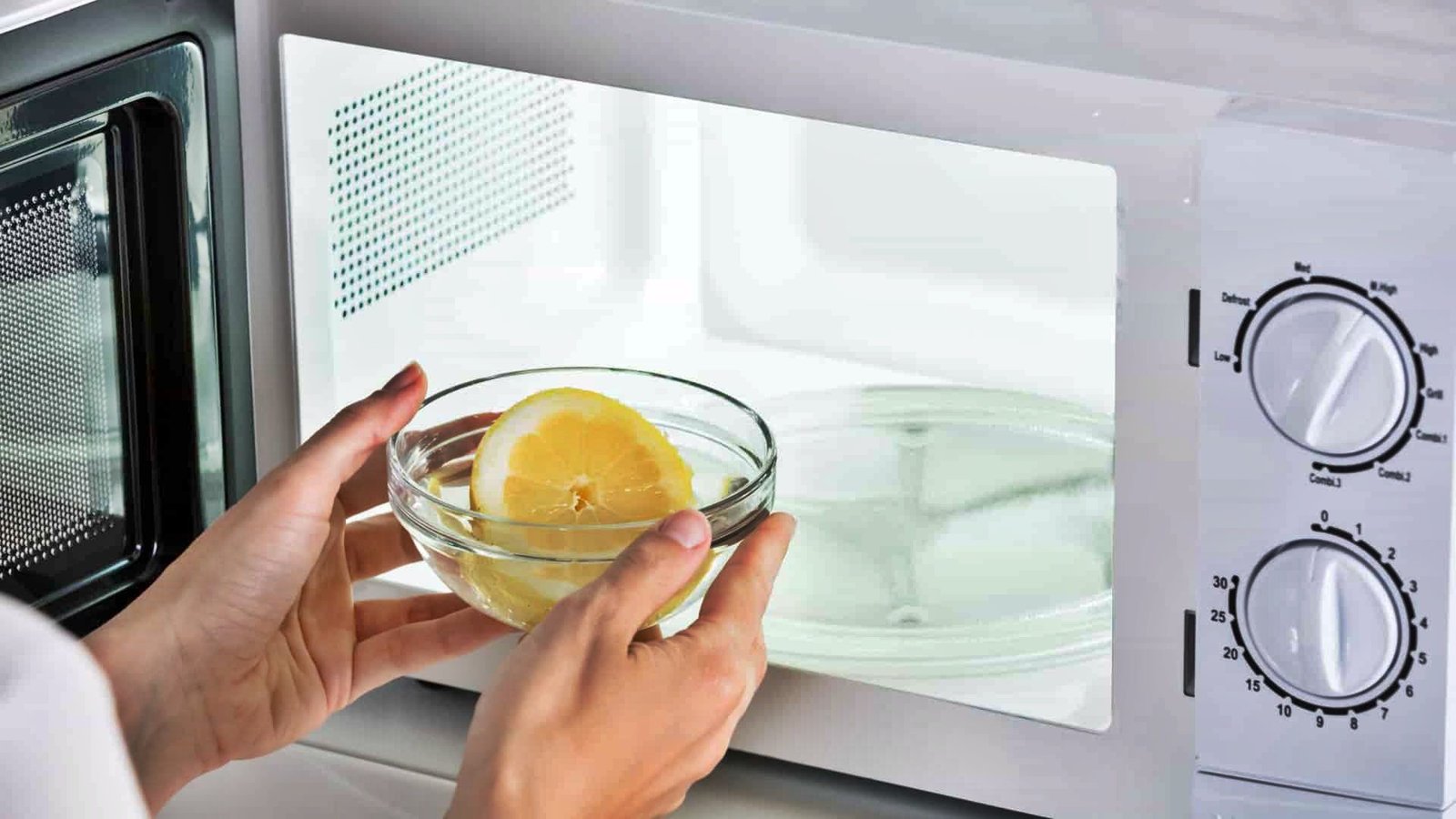Para limpar e remover os maus odores do microondas basta colocar num pires rodelas grossas de limão com um pouco de água no fundo.