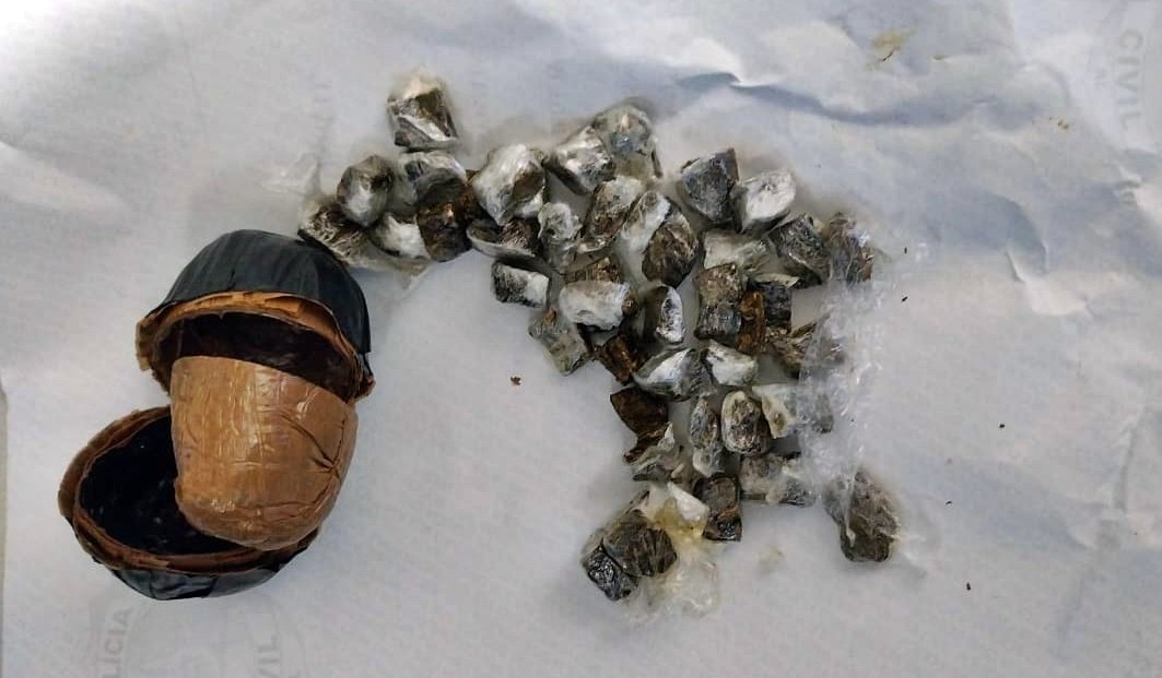 Diante da situação, seria feito um procedimento de lavagem para retirada o corpo estranho, mas foi quando a jovem admitiu ter introduzido a droga em suas partes intimas e foi para o banheiro e retirou o produto, que, segundo ela, seria para entregar a uma pessoa que cumpre pena no presídio, porém, não sabia o nome dela.