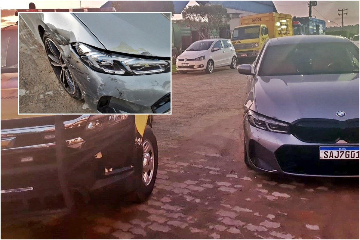 Menor guiando BMW avaliada em mais de R$ 360 mil bate em viatura da PM