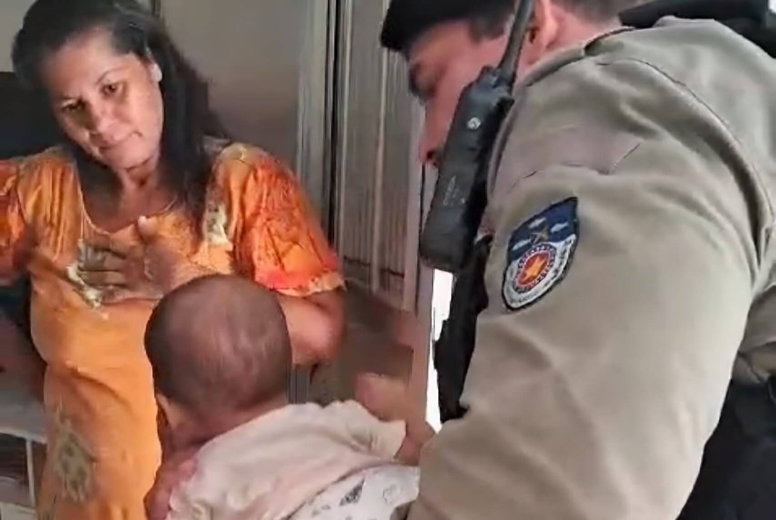 Os militares estavam patrulhando pelo Centro da cidade, quando foram abordados por um cidadão com a informação de que sua sobrinha estava engasgada e precisava de ajuda. A viatura foi ao local indicado e encontrou a mãe com o bebê já sufocando.
