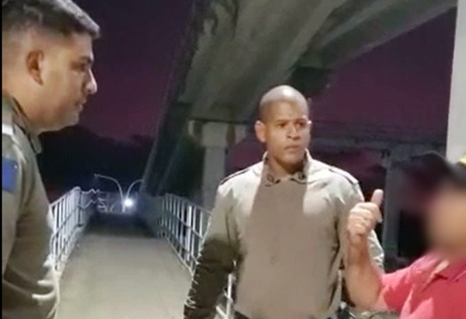 Imediatamente a guarnição se dirigiu até o local, onde encontrou o homem, em aparente surto psicótico, debruçado sobre a mureta de contenção da passarela e, segundo ele confessou, aguardando a passagem de uma carreta para se jogar.
