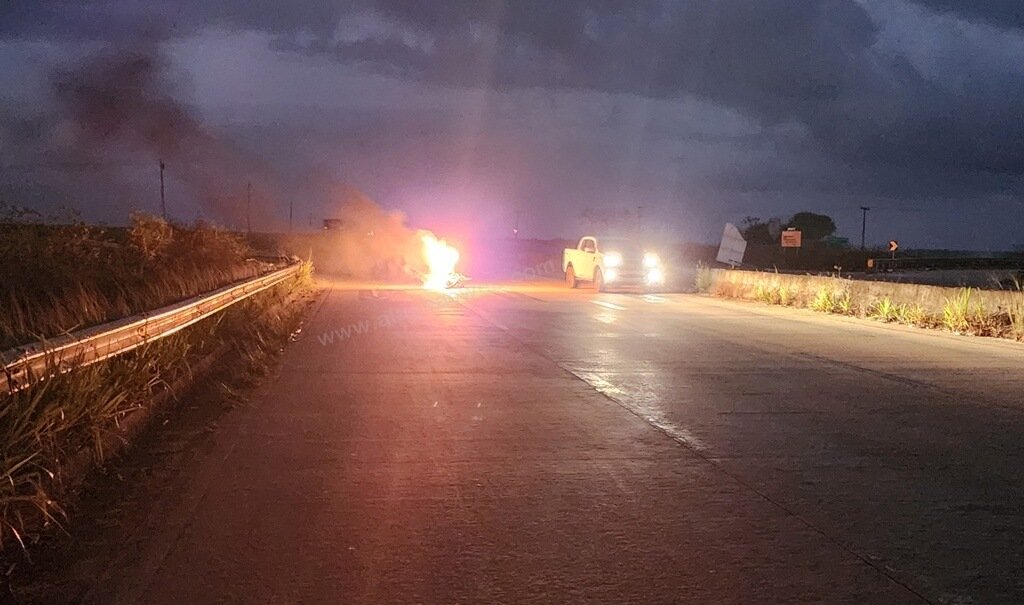 Uma motocicleta, de modelo e placa não informado, explodiu após pegar fogo no início da noite deste sábado, dia 28, na rodovia federal BR-101, em São Miguel dos Campos, interior de Alagoas.