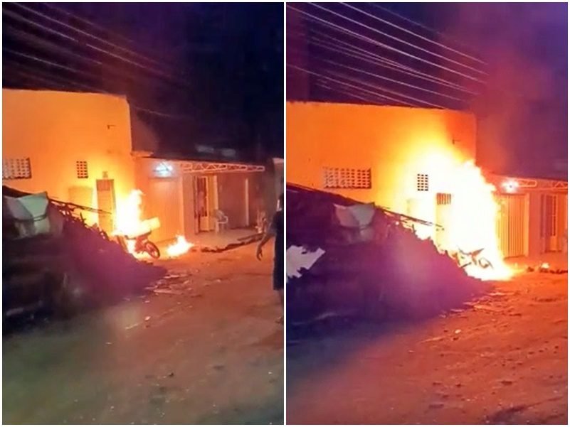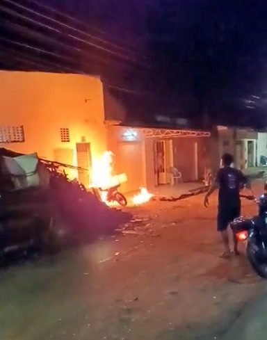 Uma motocicleta, de modelo e placa não informado, ficou completamente destruída após pegar fogo na noite desta quinta-feira (28), no loteamento Hélio Jatobá III, na parte alta de São Miguel dos Campos.