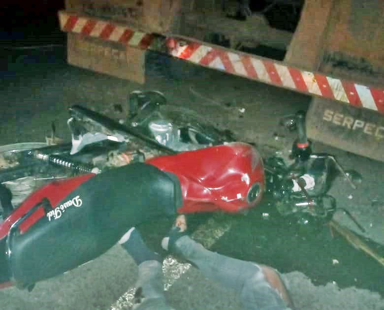 O condutor de uma motocicleta Honda CG, cor vermelha, de placa não informada, morreu na noite desta quinta-feira (12), após colidir com o veículo que guiava, na traseira de um caminhão de transporte de cana (gaiolão).