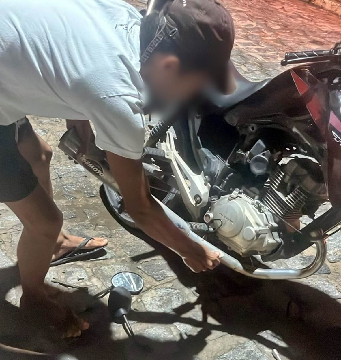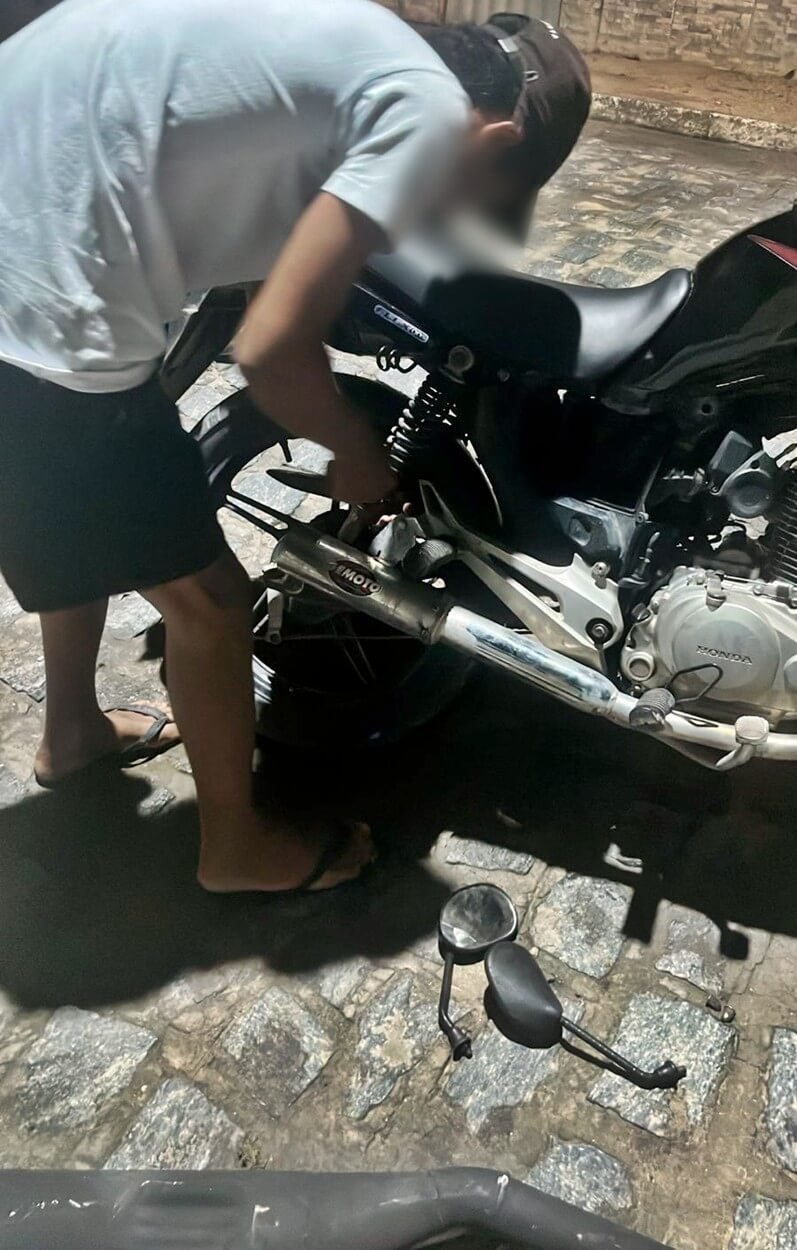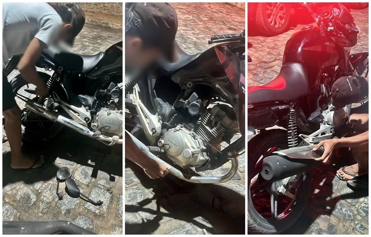Motoqueiro troca escapamento adulterado no local para evitar apreensão durante fiscalização em São Miguel dos Campos