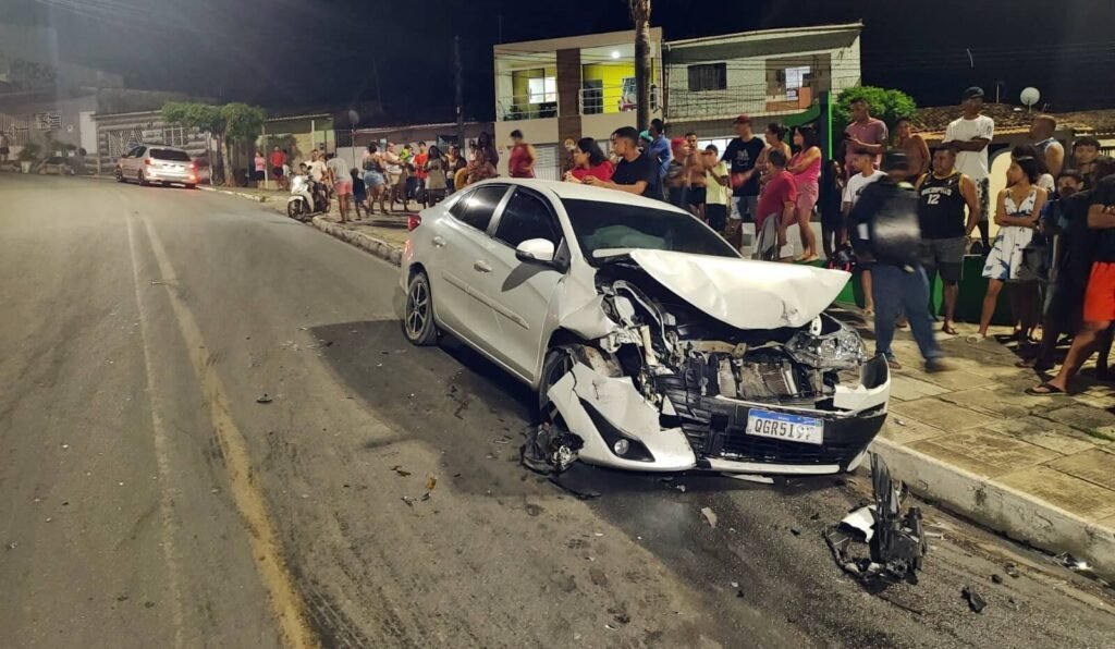 O veículo seguia sentido parte alta da cidade quando foi atingido por um Toyota Corolla, cor branca, que seguia sentido Centro.