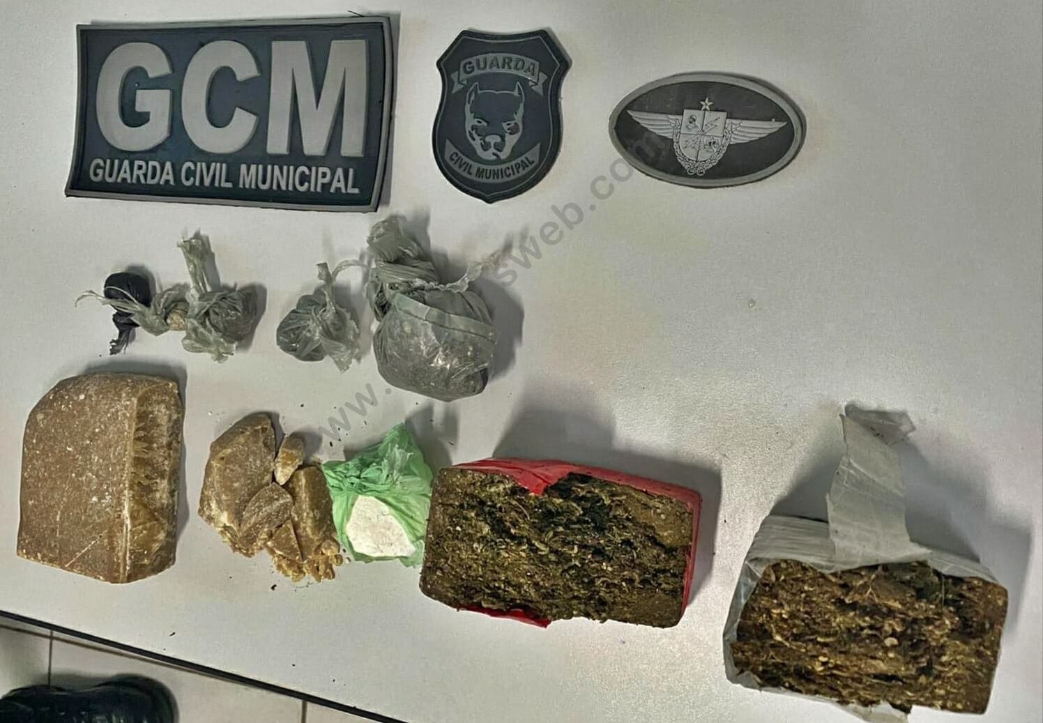 A GCM então pediu que a mulher abrisse a mochila e foi encontrado o material entorpecente. Uma quantidade significativa de maconha e crack, além de um pó branco, substancia análoga a cocaína.
