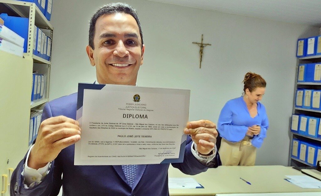 Na manhã desta segunda-feira (16), Paulinho (MDB) foi oficialmente diplomado prefeito do município de Roteiro, no Litoral Sul de Alagoas.