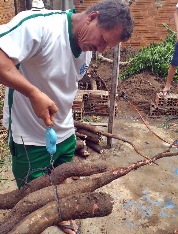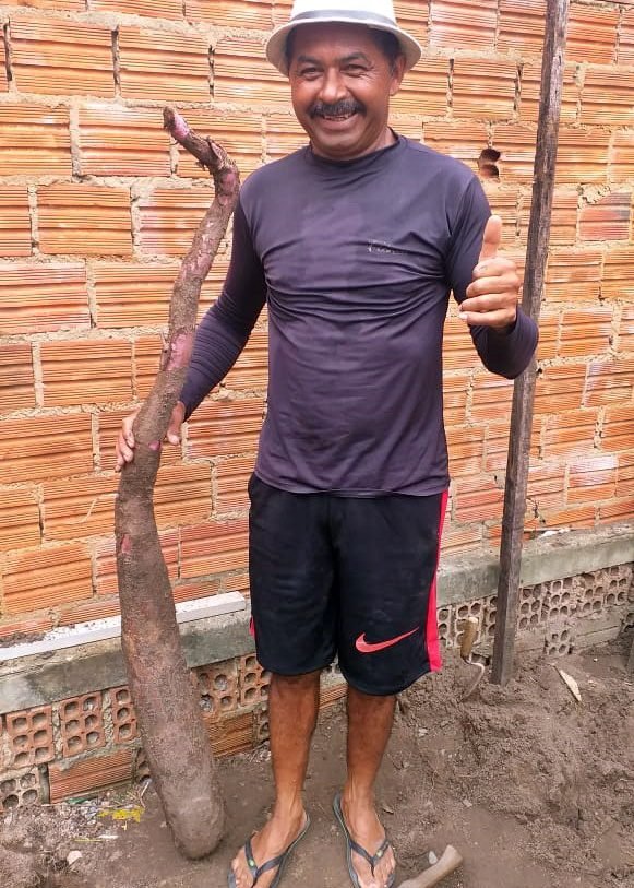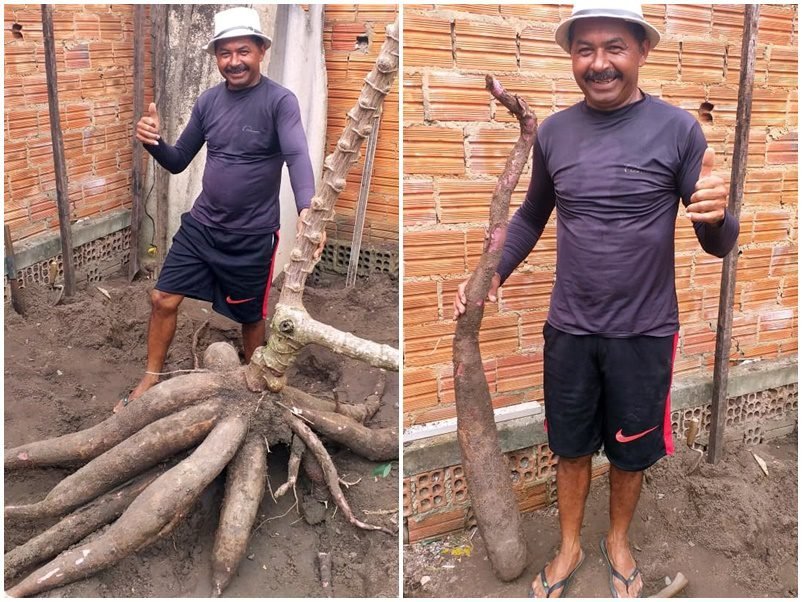“O pé é mesmo, o lugar é mesmo, mas o peso é maior”, afirmou o pedreiro, mostrando duas peças do tubérculo que pesam quase 20kg (exatos 19,5kg). José Rinaldo garante que não usou nenhum tipo de adubo para o cultivo.