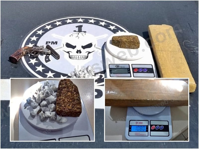 Na tentativa de escapar da polícia, o homem tentou fugir da casa pelos fundos e, de acordo com a PM, jogou no telhado do imóvel uma mochila plástica. O suspeito foi alçando e detido. A bolsa foi retirada do telhado e nela, ainda segundo a polícia, estava uma arma de fogo e uma quantidade de entorpecente.