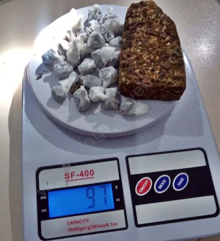 Com informações do endereço do segundo suspeito, as guarnições foram deslocadas até o local, onde o homem foi encontrado. Após novas buscas na residência, a PM encontrou um tablete grande de maconha prensada (pesando 1.090kg) e uma balança de precisão.