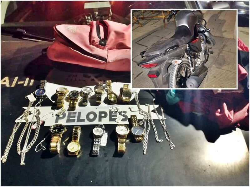 Em uma casa no loteamento Hélio Jatobá 3, as guarnições do PELOPES 01 e 02, recuperaram 12 relógios, quatro pulseiras de prata, quatro correntes do mesmo material, além de sete camisas.
