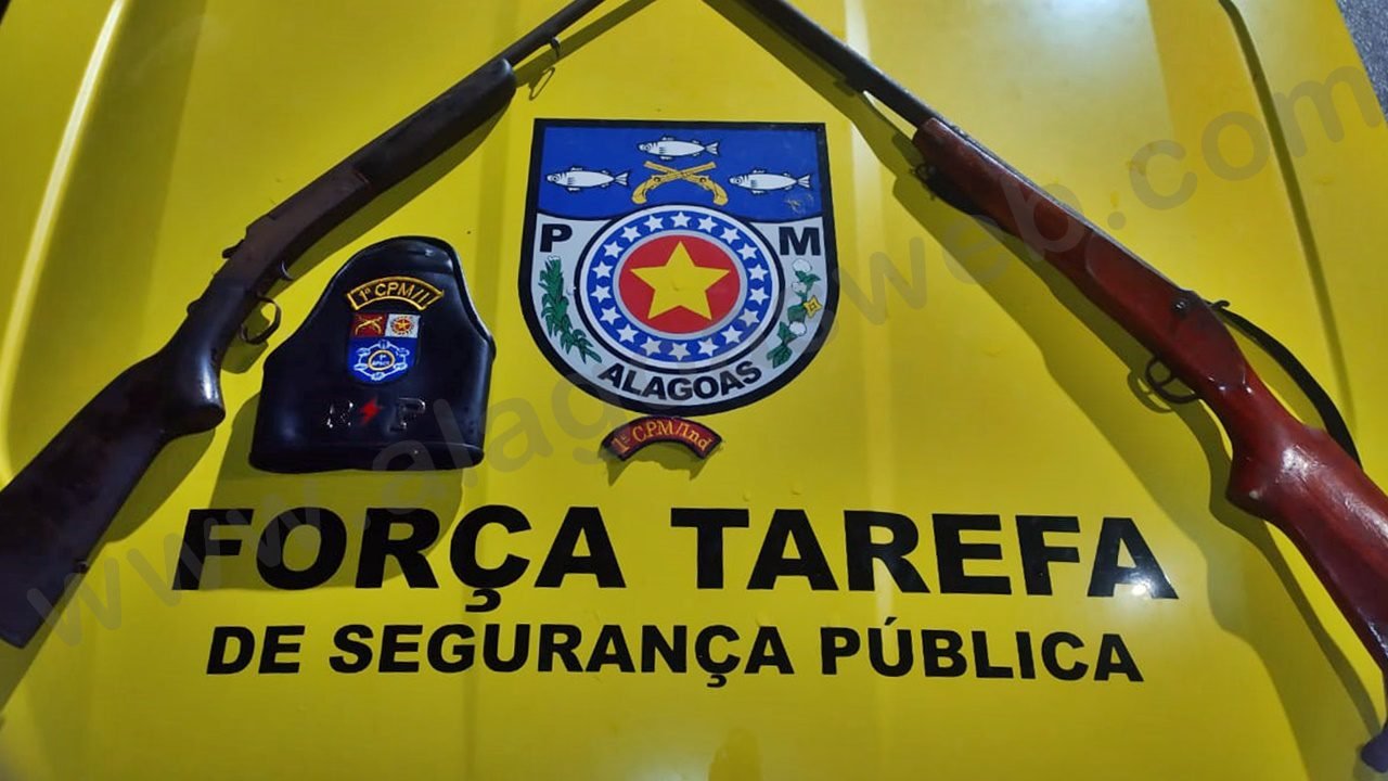 Um homem foi denunciado e preso, na madrugada deste sábado (10), na Rua da Floresta, no Povoado Coité de Baixo, Zona Rural de São Miguel dos Campos. Duas armas de fogo foram apreendidas pela Polícia Militar.