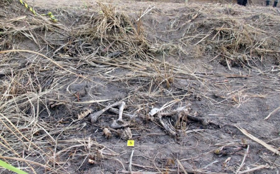 “Próximo à uma ossada, foram encontradas peças de vestuários onde a camisa apresentava perfurações compatíveis com instrumento de ação perfuro contundente, e também nessa mesma ossada foram constatadas duas perfurações no crânio da vítima que são compatíveis com lesões de entrada e saída causadas por projéteis de arma de formo”, explicou o perito criminal.