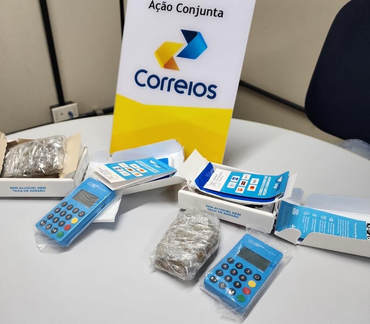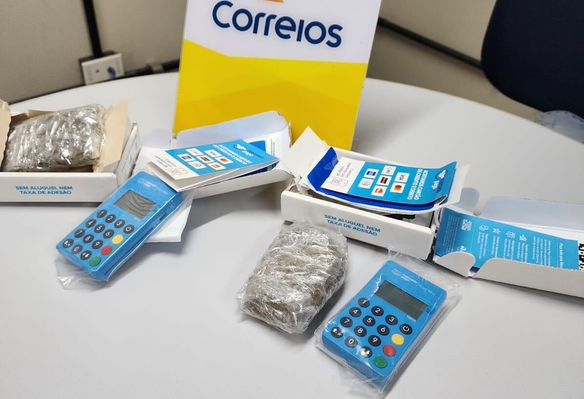 De acordo com PF, foram apreendidas cerca de 1,436Kg da substância cannabis sativa (maconha), além de maquinetas para pagamento de cartão de crédito.