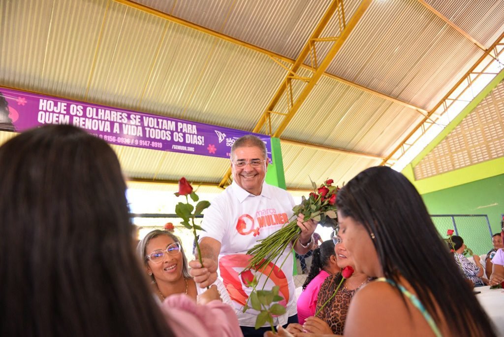 Acompanhados pela secretária da Mulher e Direitos Humanos, Quitéria Julião, e também pelo secretário de Articulação Política, Jó Clemente, eles distribuíram rosas às presentes.
