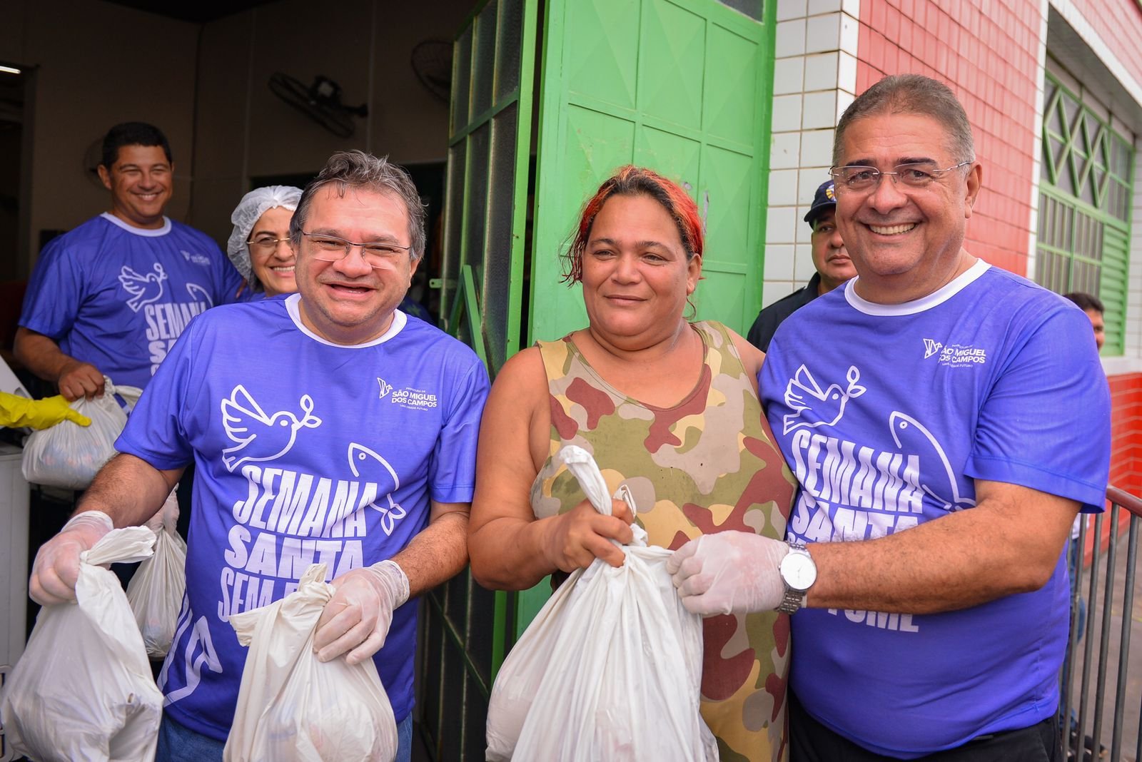 O prefeito George Clemente e o vice-prefeito, Dr. Benildo Chagas, participaram da entrega dos kits. “É uma alegria poder contribuir com a alimentação dos miguelenses. Esse kit é uma forma de garantir a comida na mesa de quem precisa, nesta Semana Santa”, destacou o prefeito George Clemente.