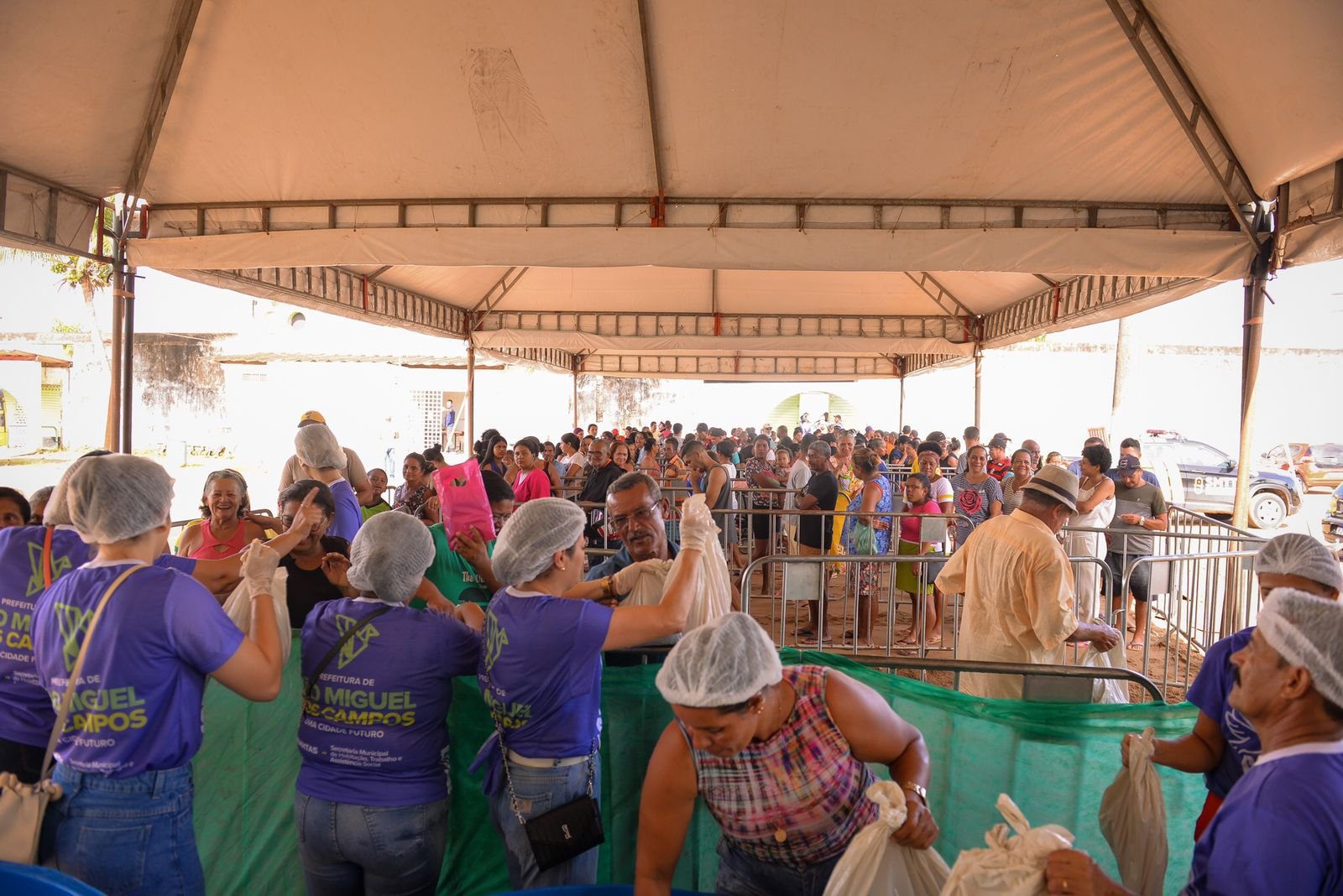“Comida no prato de quem mais precisa”. Seguindo a tradição, a Prefeitura de São Miguel dos Campos, através da Secretaria Municipal de Assistência Social, realizou na manhã desta quarta-feira (04), a entrega de mais de 30 mil kits do projeto “Semana Santa Sem Fome”, no Estádio Ferreirão. Os kits distribuídos, compostos por peixe, leite de coco e arroz, têm como objetivo ajudar as famílias miguelenses mais carentes durante o feriadão da Semana Santa.