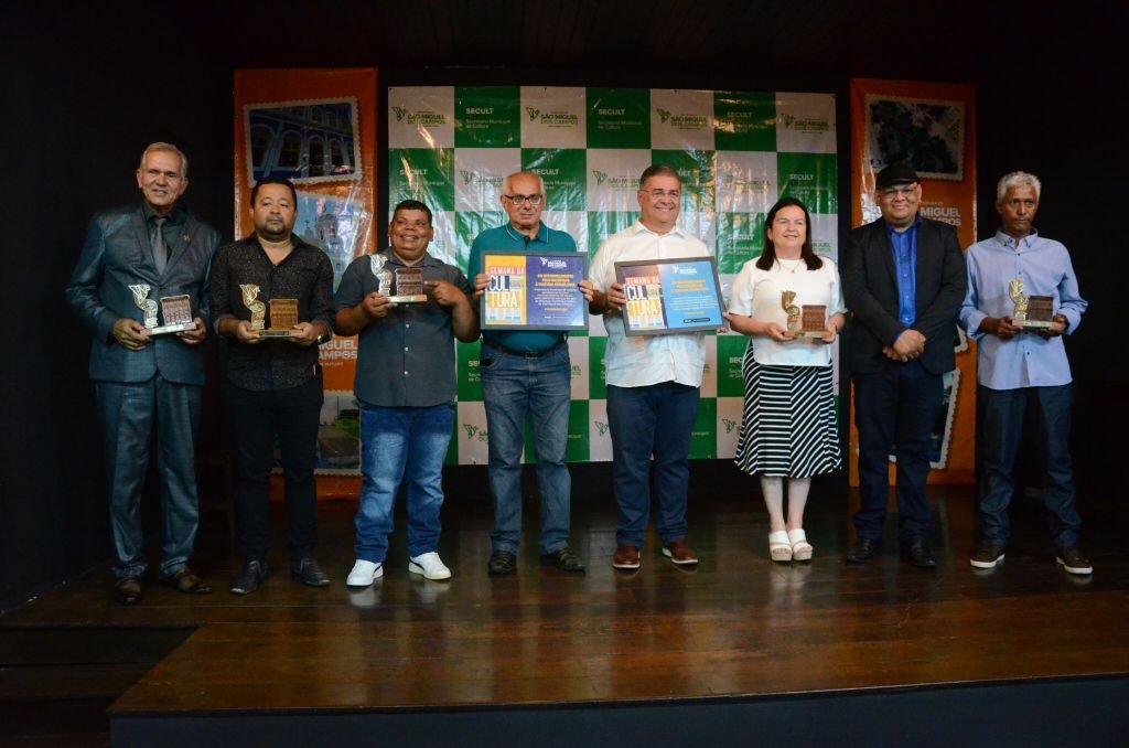 O prefeito George Clemente também foi homenageado. Receberam a premiação, a deputada estadual Fátima Canuto - por seu apoio à cultura miguelense - e os artistas: Janiel Rodrigues (“Bebezão”); Luiz Carlos Paranhos; Wellbert Teles; e Williams Santos.
