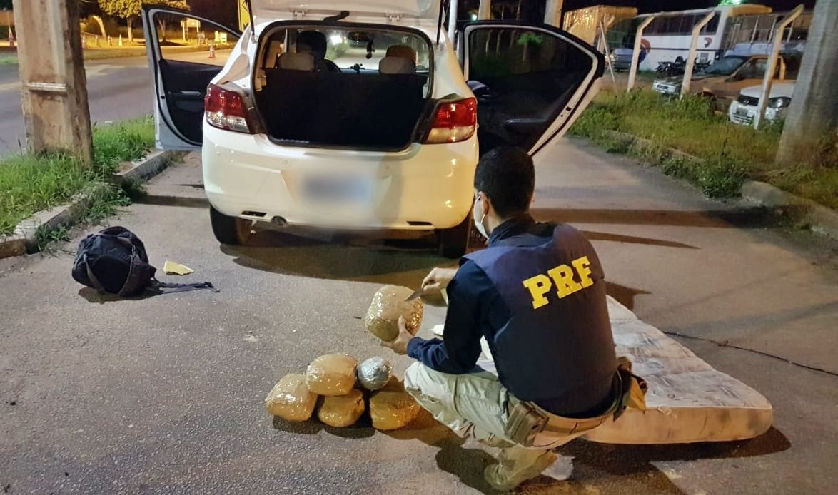 Os homens apresentaram documentação pessoal e do veículo, mas os PRFs resolveram fazer uma vistoria no interior do carro, quando encontraram um colchão velho no porta-malas. Ao manusearem o objeto, os agentes perceberam que havia algo estranho dentro do colchão.