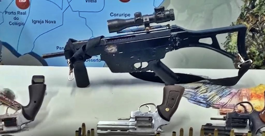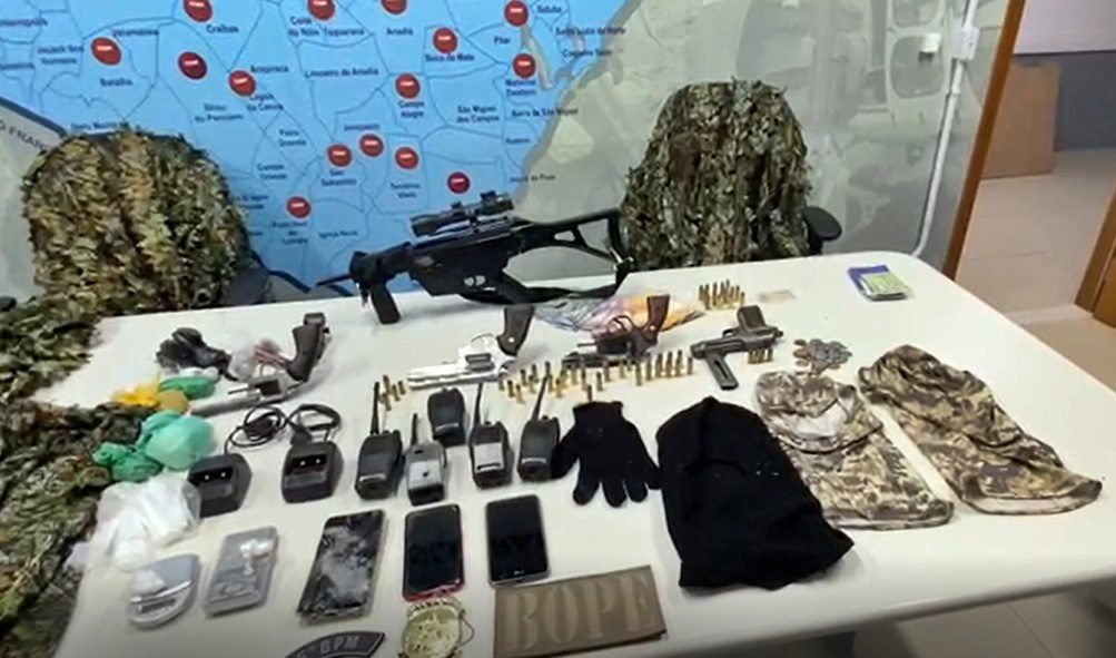 Com a quadrilha, a polícia apreendeu cinco armas de fogo (uma submetralhadora, dois revólveres calibre 38 e um calibre 32, além de uma pistola 9mm), vasta munição, cocaína, maconha e uma balança de precisão, além de rádios HT e carregadores do equipamento.