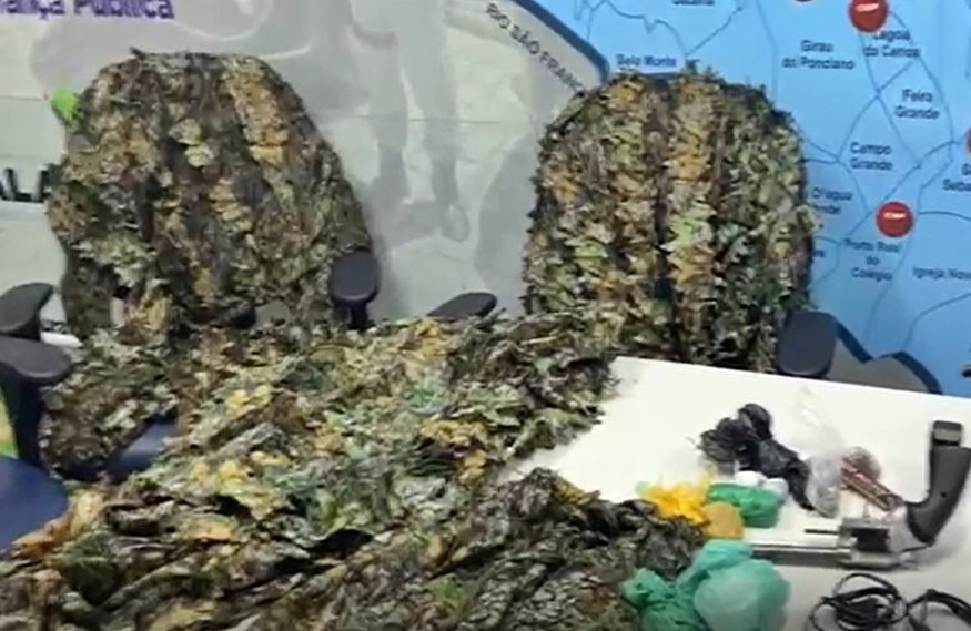 Balaclavas (touca ninja) e trajes de camuflagem, também foram apreendidos.