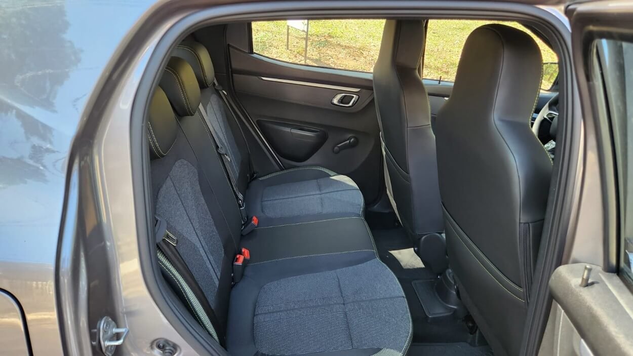 O espaço interno, considerando o entre-eixos de 2.423 mm, mostrou-se adequado para quatro ocupantes durante a viagem. Os passageiros traseiros dispuseram de bom espaço para os joelhos, e o porta-malas de 290 litros comportou as bagagens para a jornada. Com o banco traseiro rebatido, o compartimento pode chegar a 1.100 litros, ampliando a versatilidade para usos pontuais.