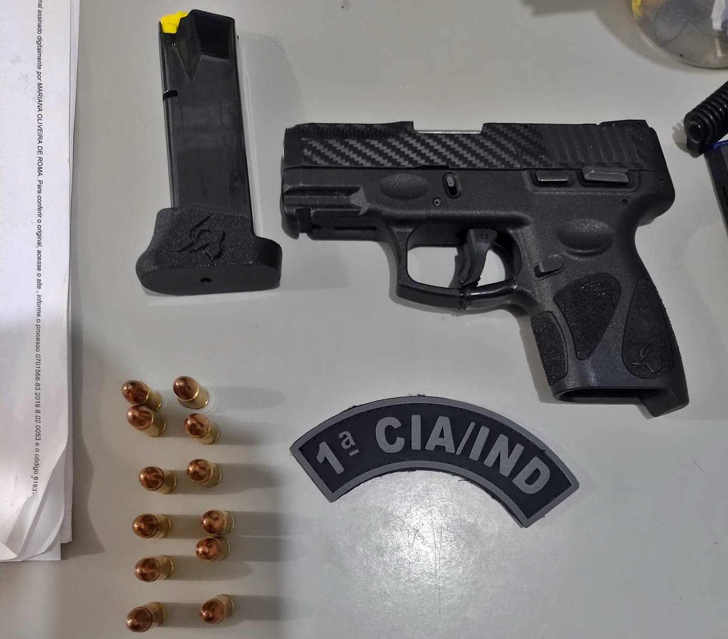 O homem foi abordado e, com ele, os policiais encontraram uma pistola Taurus G2C, calibre 9mm, com 12 munições intactas. Apesar de alegar possuir a posse da arma, o indivíduo não tem autorização para porta a pistola.