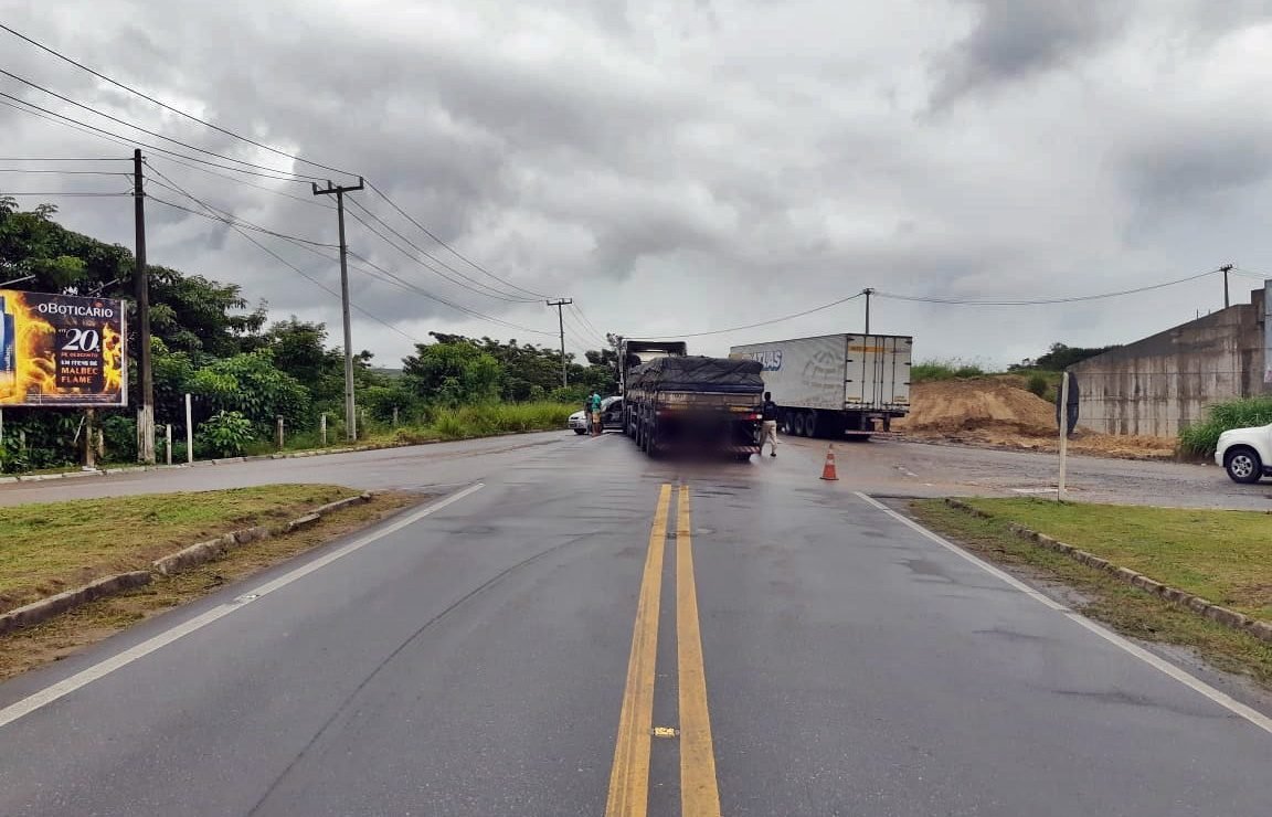 De acordo com a Polícia Rodoviária Federal (PRF), o motorista do veículo, identificado por Edmilson Barreto dos Santos, 45 anos, cruzou a rodovia para ter acesso a área urbana, antes de ser atingido pelo veículo pesado, com placa de São Paulo e que transportava uma carga de pó de pedra.