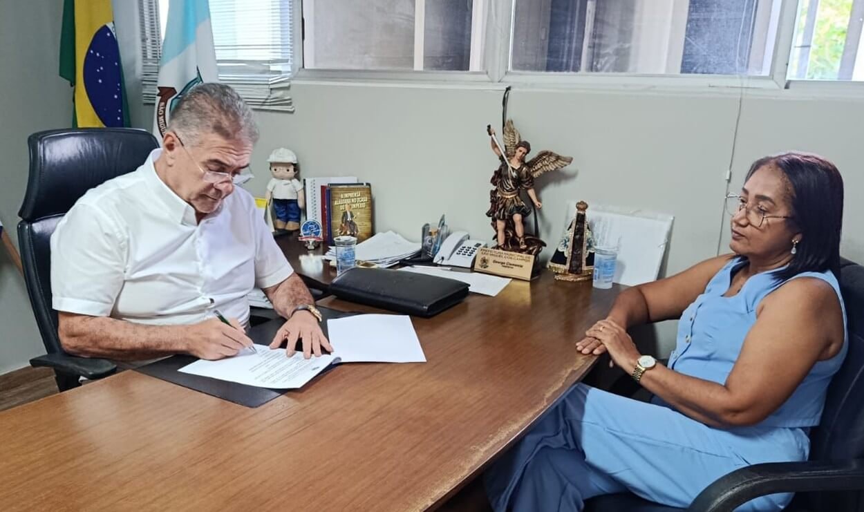 O termo foi assinado pelo prefeito George Clemente, em reunião com a Secretaria da Mulher e Direitos Humanos do município, Quitéria Julião, fortalecendo o compromisso da cidade na proteção das mulheres em situação de violência.