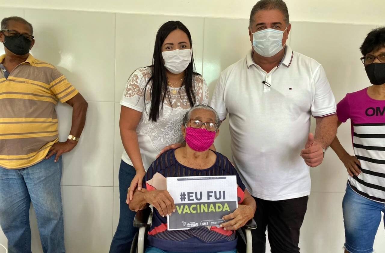 No primeiro final de semana da Campanha de Vacinação contra o coronavírus para idosos com mais de 85 anos, em São Miguel dos Campos, 98 idosos foram vacinados - nos pontos de vacinação e em suas casas. Aqueles que ainda não tomaram a vacina, serão imunizados em suas próprias residências pelos técnicos da Secretaria Municipal de Saúde (SMS).