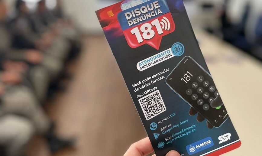 Para realizar uma denúncia, o cidadão pode utilizar três métodos: pelo número 181, pelo aplicativo Disque-Denúncia AL ou pelo site disquedenuncia.seguranca.al.gov.br. Vale ressaltar que todos os meios são gratuitos, não é preciso se identificar e o sigilo é garantido.Legenda: policiais recebem orientação sobre como proceder ao averiguar as denúncias feitas no Disque-denúncia.