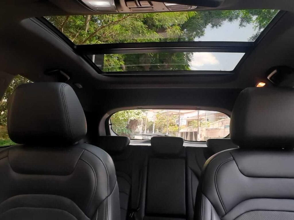 Outros itens de comodidade são o ar-condicionado automático, banco do motorista elétrico com seis modos de controle, teto solar panorâmico, abertura do porta-malas por interruptor elétrico e aquecimento dos assentos dos bancos dianteiros.