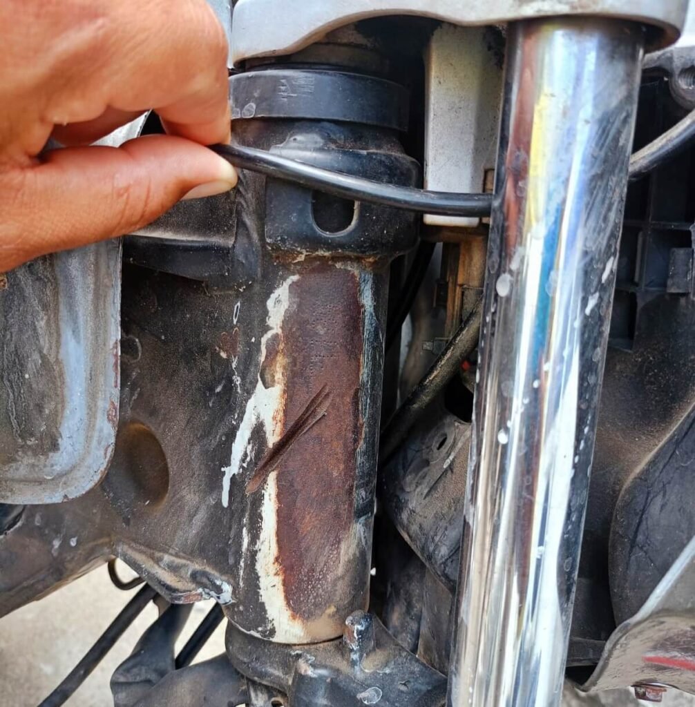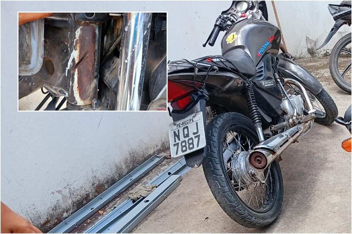 Durante as verificações, os agentes também constataram que o chassi da motocicleta estava suprimido (rasgado), não sendo possível confirmar a procedência do veículo.