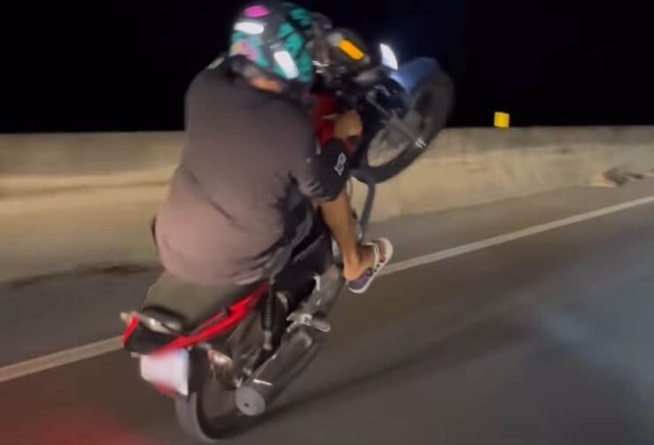 As imagens que viralizaram nas redes sociais, mostrando os motoqueiros realizando manobras perigosas, empinando motos e subindo nas calçadas da Igreja Matriz e perturbando o sossego da população. Os veículos estavam equipados com escapamentos adulterados, provocando barulho insupotvel.