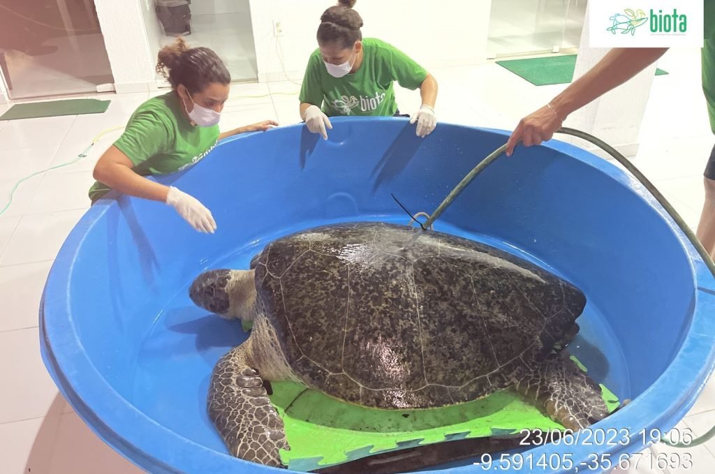 Após o resgate, a tartaruga verde foi encaminhada para a sede do Biota, onde receberá cuidados necessários. A equipe veterinária especializada realizará exames detalhados para avaliar o estado de saúde da tartaruga e administrará os tratamentos necessários.