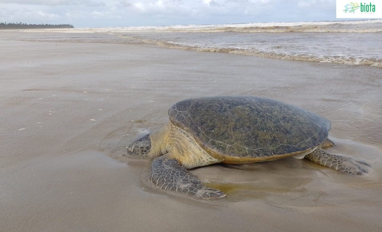 Na tarde da sexta-feira, dia 23, uma tartaruga verde (Chelonia mydas) de impressionantes 120 cm de casco foi resgatada com vida na Praia dos Morros do Camaragibe, localizada no município de Passo do Camaragibe, no Litoral Sul de Alagoas