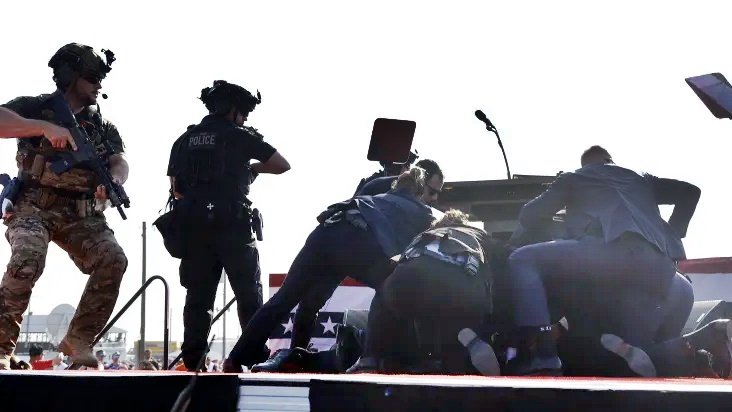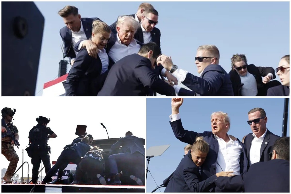 Jornalistas que estavam no local relataram que ouviram “uma série de fortes explosões ou estrondos” antes que agentes do Serviço Secreto corressem em direção a Trump.