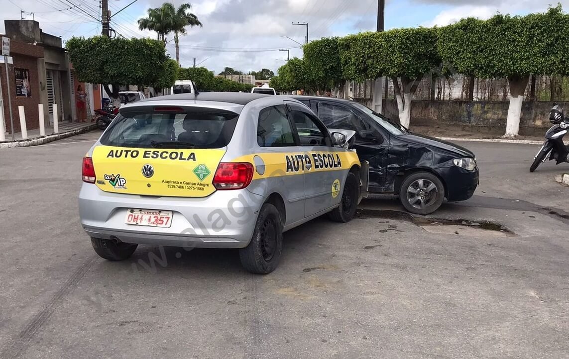 Veículo de autoescola se envolve em acidente no Centro de Campo Alegre