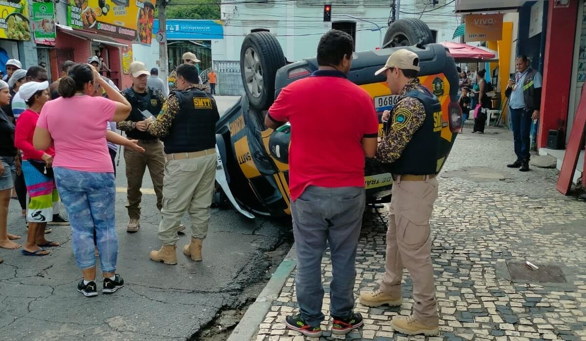 Viatura do DMTT capota durante perseguição a carro suspeito de transporte clandestino